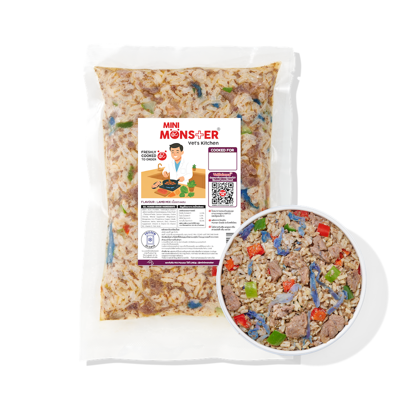 ส่วนผสม : เนื้อแกะ, ตับวัว, ข้าวไรซ์เบอร์รี่, กะหล่ำปลีม่วง, แตงกวา, พริกหวานเหลือง, น้ำมันปลาแซลมอน, น้ำมันคาโนล่า, น้ำมันดอกคำฝอย, แคลเซียมคาร์บอเนต, VitaminPremix, MineralPremix, Choline Chloride 60%
